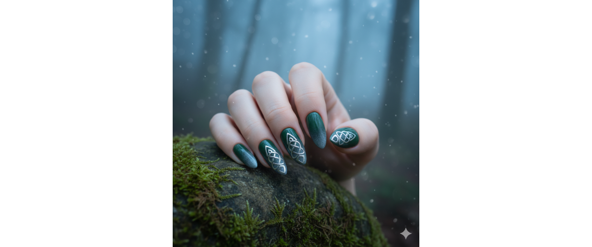 Mystic forests, Celtic roots. 🌲✨ These green ombré nails with silver knots are pure enchantment. Double tap if you’d wear this magical mani. 💅 Follow for more cultural nail inspo. #NailArt #NailsOfInstagram #NailInspo #ManicureGoals #OctoberNails #CulturalStyle #MysticalMani #FallNails #ManicureMagic #NailArtIdeas #CelticDesign