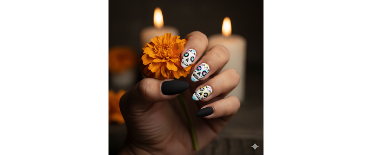 Sugar skulls, but make it chic. 💀✨ These DÃa de los Muertos nails are pure celebration in color. Double tap if you’d wear this set, and tag a friend who’d love it too! 🌼 #NailArt #NailsOfInstagram #NailInspo #ManicureGoals #HalloweenNails #DiaDeLosMuertos #SpookySeason #OctoberNails #ManicureMagic #NailArtIdeas #FestiveNails
